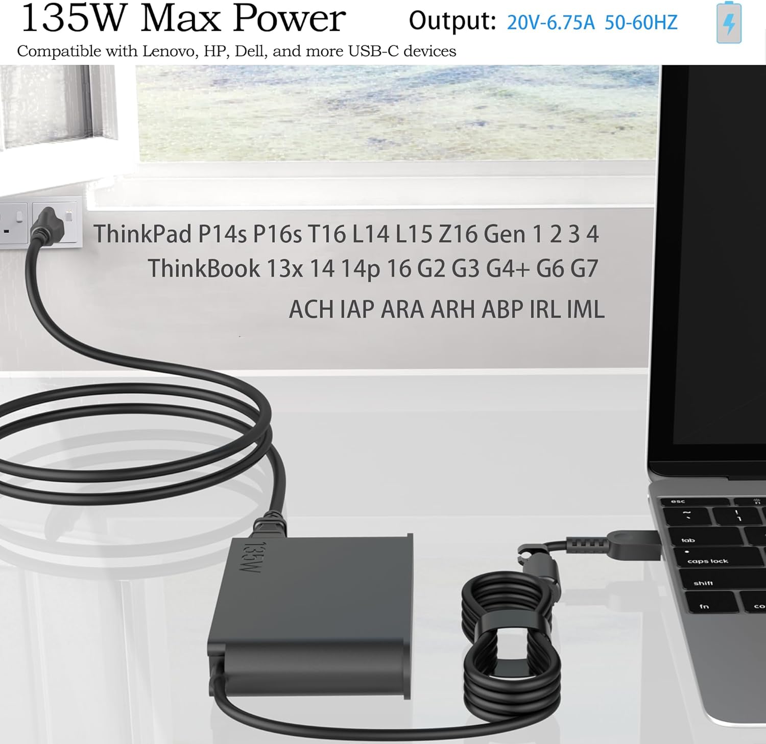 135W 140W USB C AC Charger for Lenovo ThinkPad P14s P16s T16 L14 L15 Z16 Input:100-240V Output: 20V 6.75A