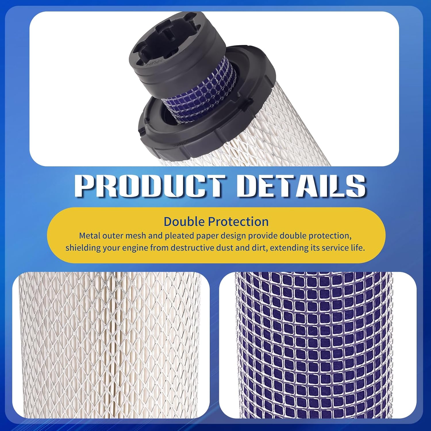 | OEM Equivalent Part Number | Inner Filter Replaces OEM Part Numbers: Compatible with Kawasaki 11013-7019, 11013-7045, Compatible with Kohler 25 083 04, 25 083 04-S, 4236, 821136, 841238, M131803, M131802, M144098, MIU12458, PMAF25551, PMAF25552, P822858, K7561-82820, R1411-42280, TA040-93220, 4423981, PMAF25552, RG25644, RG60866, 4114747, 4167145, 6669548, 6672468, 1467473, 1710493, 21536900, 21538700, 103-1326, 5022892X2, 5023140, 841238, 100937, 785279, 5101542, 0162184, 11801160, 4164631, 6672468, 84539215, 86519867, 86549701, 87300180, 87300181, Outer Filter Replaces OEM Part Numbers: Compatible with Kawasaki 11013-7020, 11013-7044, Compatible with Kohler 25 083 01, 25 083 01-S, 4235, 841497, 21537000, 21538600, 21536900, 4114746, 6672467, 4164630, 86401594, 87300178, 87300179, 1213661, 1467472, 6672467, 102498601, 103-1327, 72987G01, 5022892X1, 5023141, 841237, 100936, 21536900, 21537000, 21538600, 785261, M131802, M144100, M164264, 86549700, 5101543, 108-3810, 98-9763, 224258007, M170281, MIU12457, P821575; |