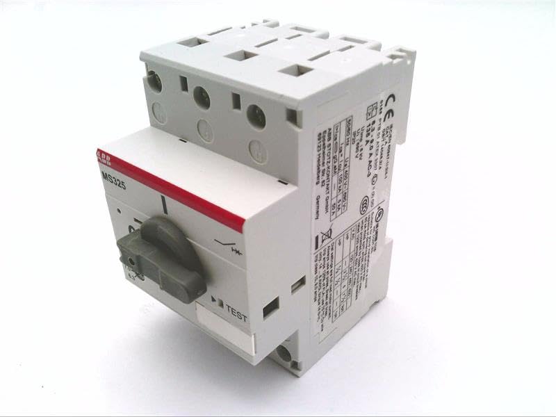 ABB MS325 3manual motor starter has690 VAC/440 VDC voltage rating and6.3 - 9 A amp rating with a power rating of 7.5 hp. Brand Name|ABB#MFR Part Number|MS325-9.0#UPC|662019393193#UNSPSC|39121521#Item|Manual Motor Starter#Series|MS325#Voltage Rating|690 VAC, 440 VDC#Amperage Rating|6.3 - 9 A#Power Rating|7.5 hp at 600 VAC#Frequency Rating|50/60 Hz#Number of Phases|3#Number of Poles|3#Mounting Type|35 mm DIN-Rail Snap-On#Enclosure Type|IP20#Operating Temperature|-25 to 50 deg C#Dimensions|87.5 mm Height x 54 mm Width x 75.5 mm Depth#Standard/Approvals|IEC/EN 60947-1, IEC/EN 60947-2, IEC/EN 60947-4-1, IEC/EN 60947-5-1, UL 508, CSA 22.2 No 14#Application|For protecting the load and the installation against short circuit and overload