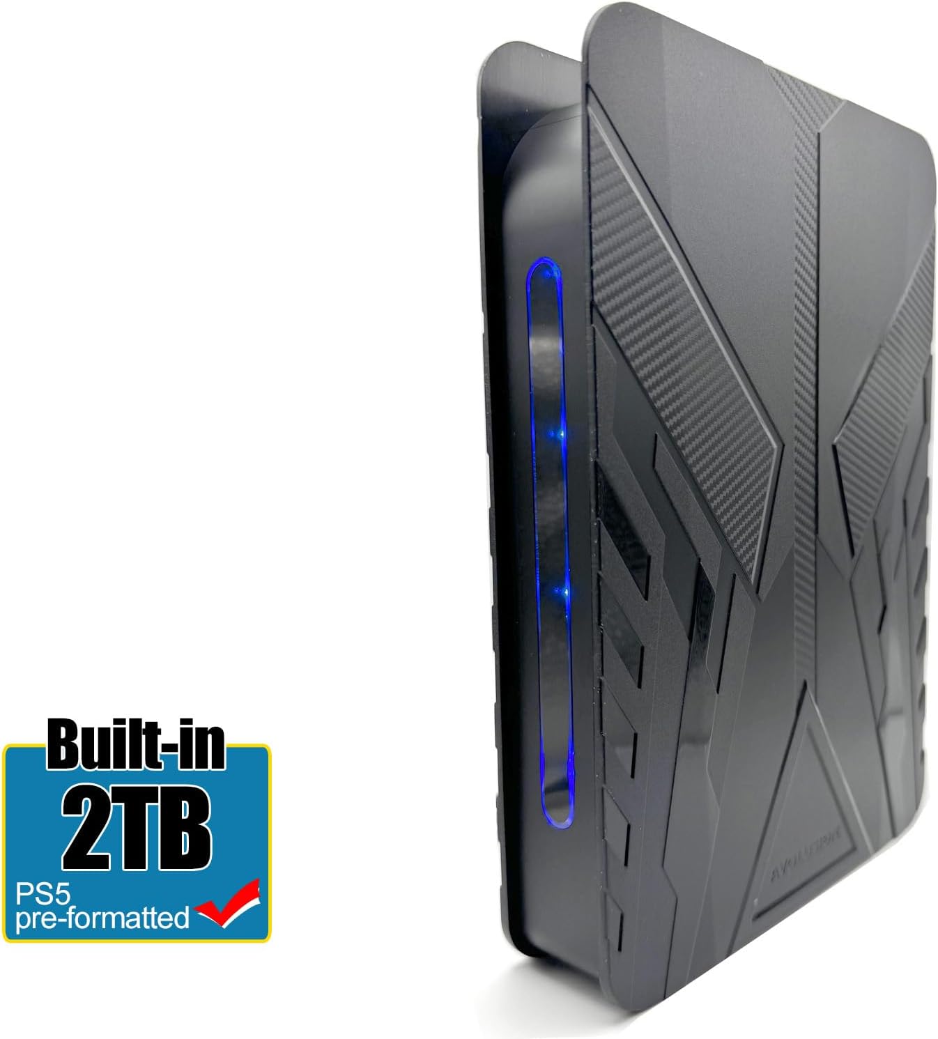 NOTE: You can play PS4 games directly from USB extended storage, which lets you save space on your PS5 console storage for PS5 games. To play PS5 games, you need to copy game data from your USB extended storage drive back to your PS5 console's internal SSD storage. It’s much quicker to copy a PS5 game from USB extended storage than to re-download it. Avoluxion PRO-T8 Series 2TB (2-Terabyte) External Gaming Hard Drive is the value hard drive upgrade kit provides the best and easy solution to expand your PS5 game console storage capacity instantly! Plug and Play USB 3.0 interface providing a perfect portable storage solution for you to store & backup your game data, music, picture, video and more! Avoluxion PRO-T8 Series External Gaming Hard Drive designed to work with your PS5 game console perfectly! Fully compatible with PS5. It comes with silent fan-less design to keep your External Gaming Hard Drive operate quietly! Avoluxion PRO-T8 Series External Gaming Hard Drive Upgrade Kit features high-quality construction, advanced external interface technology, durable chassis and state-of-the-art industrial design, assured to provide you with years of reliable performance. Features: UPC: 810064874413Model: PROT8BK-2TB-PS5 Built-in 2TB Capacity Hard Drive Compatible with PS5 PlayStation 5 File System Pre-Formatted Expand PS5 hard drive storage instantly! Add extra storage to your game console without opening up the case Specification: Interface: USB 3.0 Built-In Capacity : 2TB Material: Plastic/PVC USB Data Speed: 5.0 Gbit/s Support Platform: PS5 Color: Black Dimension: 8"(L) x 5"(W) x 1.6"(H) Power Input: 100V ~ 240V (50-60Hz 0.8A) Power Output: 12V 2.0A Package Contents: Avoluxion PRO-T8 2TB External Gaming Storage (PS5) USB 3.0 Cable Power Adapter User Manual