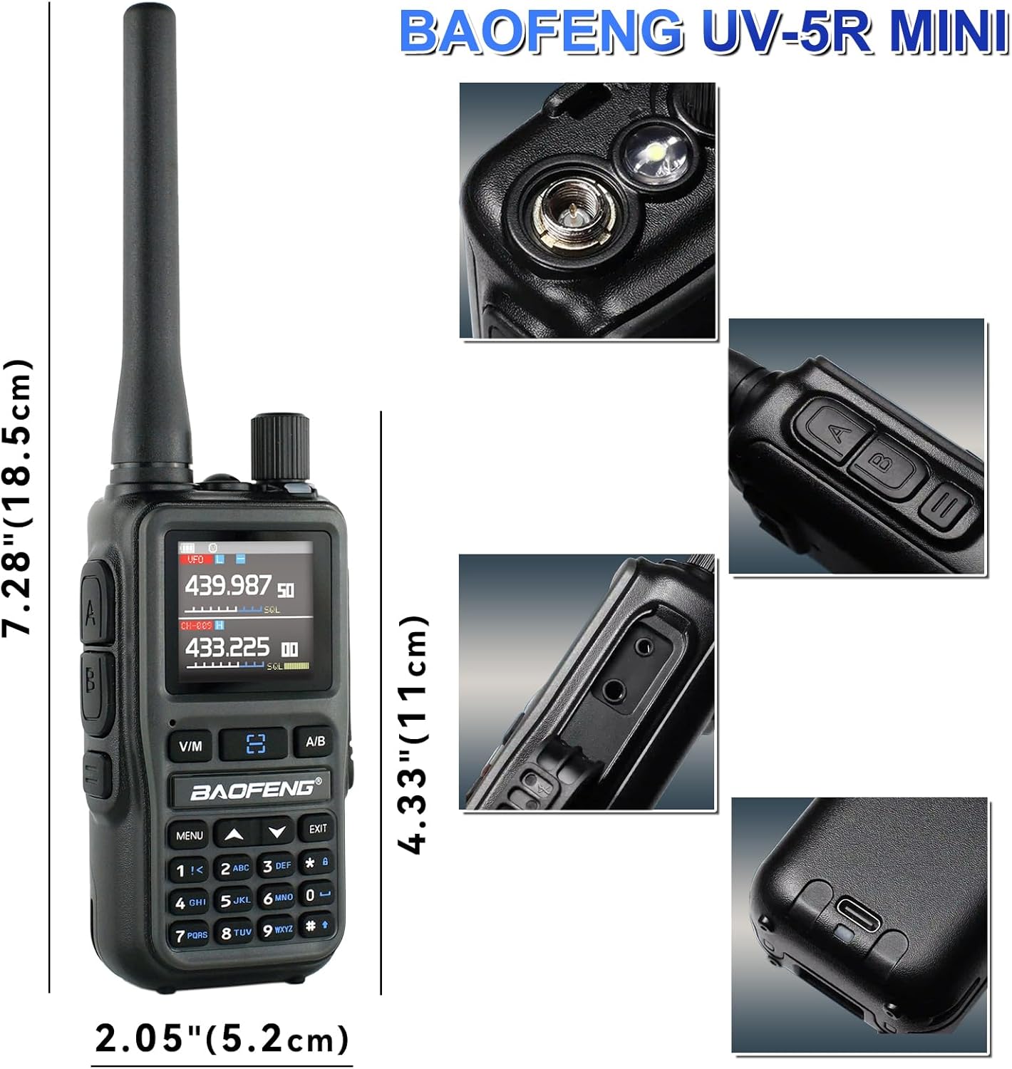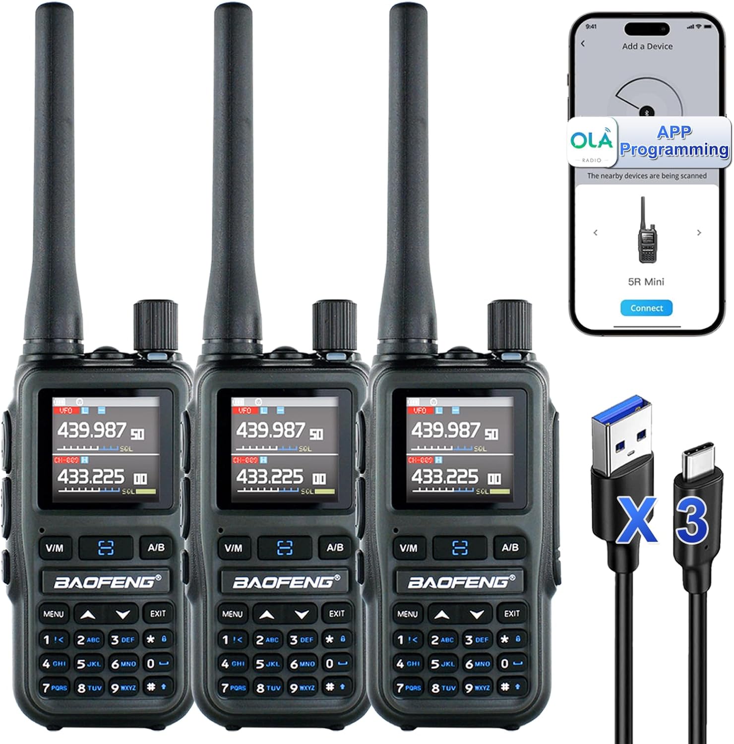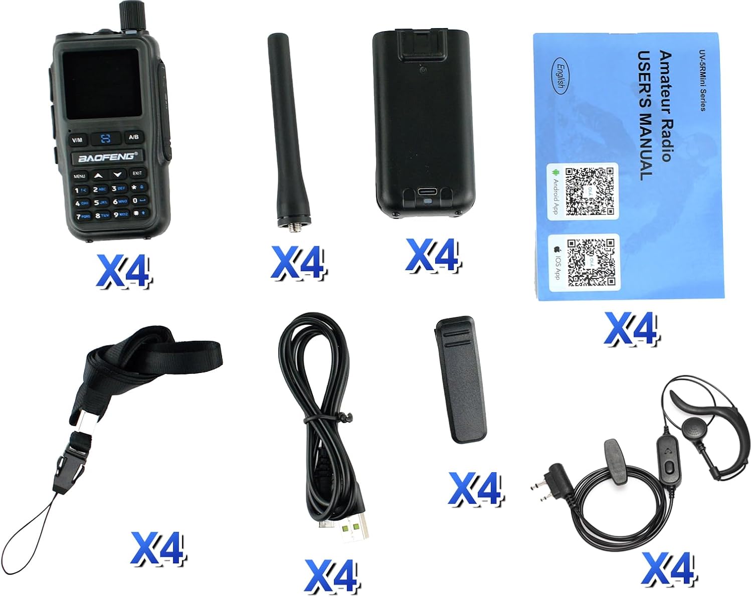 Baofeng UV-5R Mini Handheld Ham Radio Long Range Two Way Radio Dual PTT Rechargeable Walkie Talkies Longe Range NOAA Weather Radio APP Programming 999CH USB-C Charging Survival Radio 4 PACK