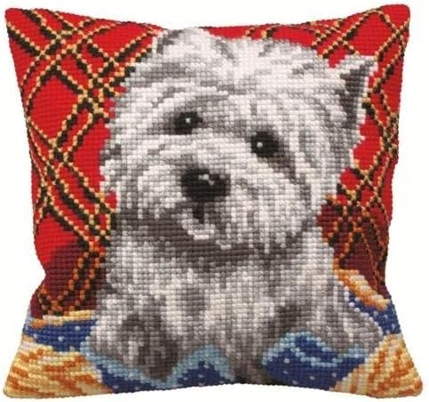 COLLECTION D'ART-Pillow Cross Stitch Kit. Stitch up a beautiful decorative throw pillow! With a wide variety of designs available; you're sure to find several that will look amazing in your home. Each kit contains a printed canvas; acrylic yarn; needle; and instructions. Backing; stuffing; and other finishing materials not included. Design: Bichon. Finished dimensions: 15-3/4x15-3/4 Inch. Imported.