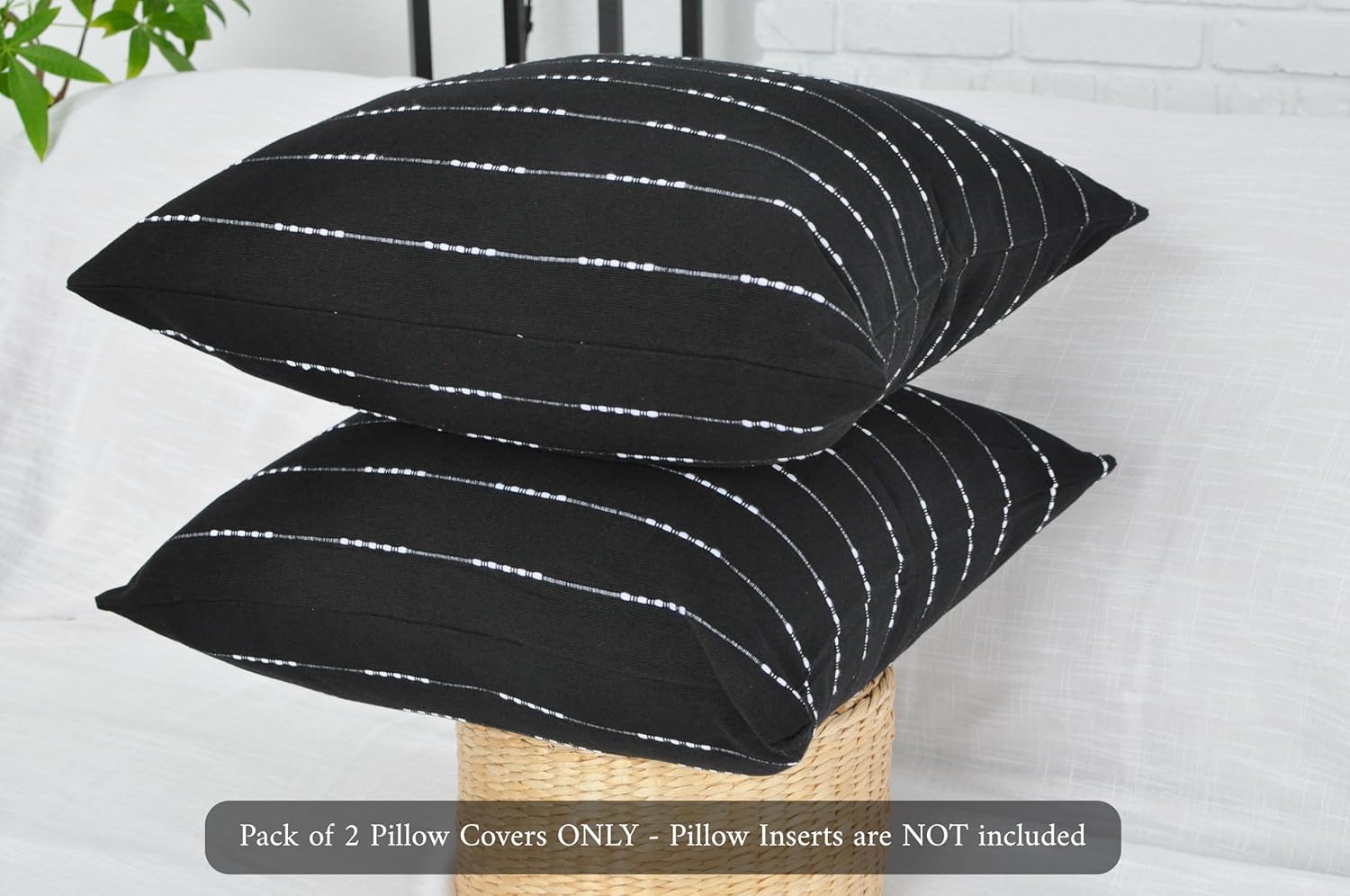 ntroducing our Pack of 2 Cotton Pillow Covers, expertly crafted using the machine loom technique. These textured and woven pillow covers boast a contemporary design with subtle, handcrafted details. Handwoven with care, our artisan-made cushion covers feature muted, neutral tones and minimalist patterns, including woven stripes for added charm. Elevate your decor with these high-quality, natural cotton pillow covers that not only bring luxury but also support small businesses. Experience the perfect blend of style and craftsmanship in your home.