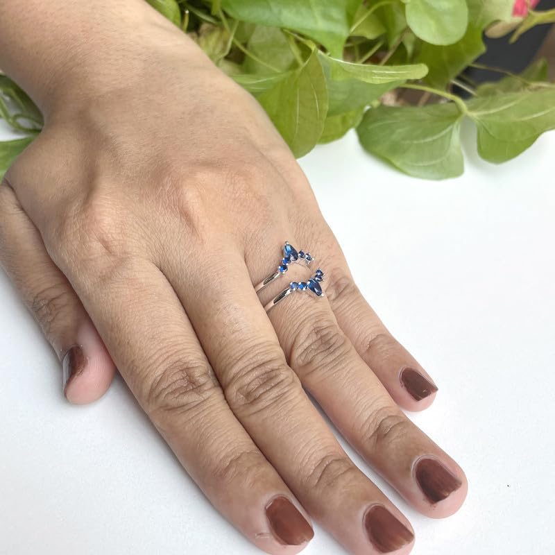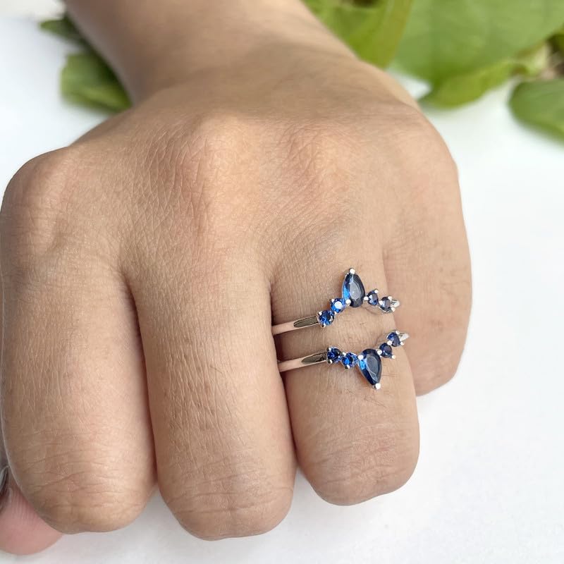 This Band Crafted in 925 Sterling Silver, available in 14K White, Yellow and Rose Gold Plating. Round & Pear Cut simulated Sapphire set in prong setting.