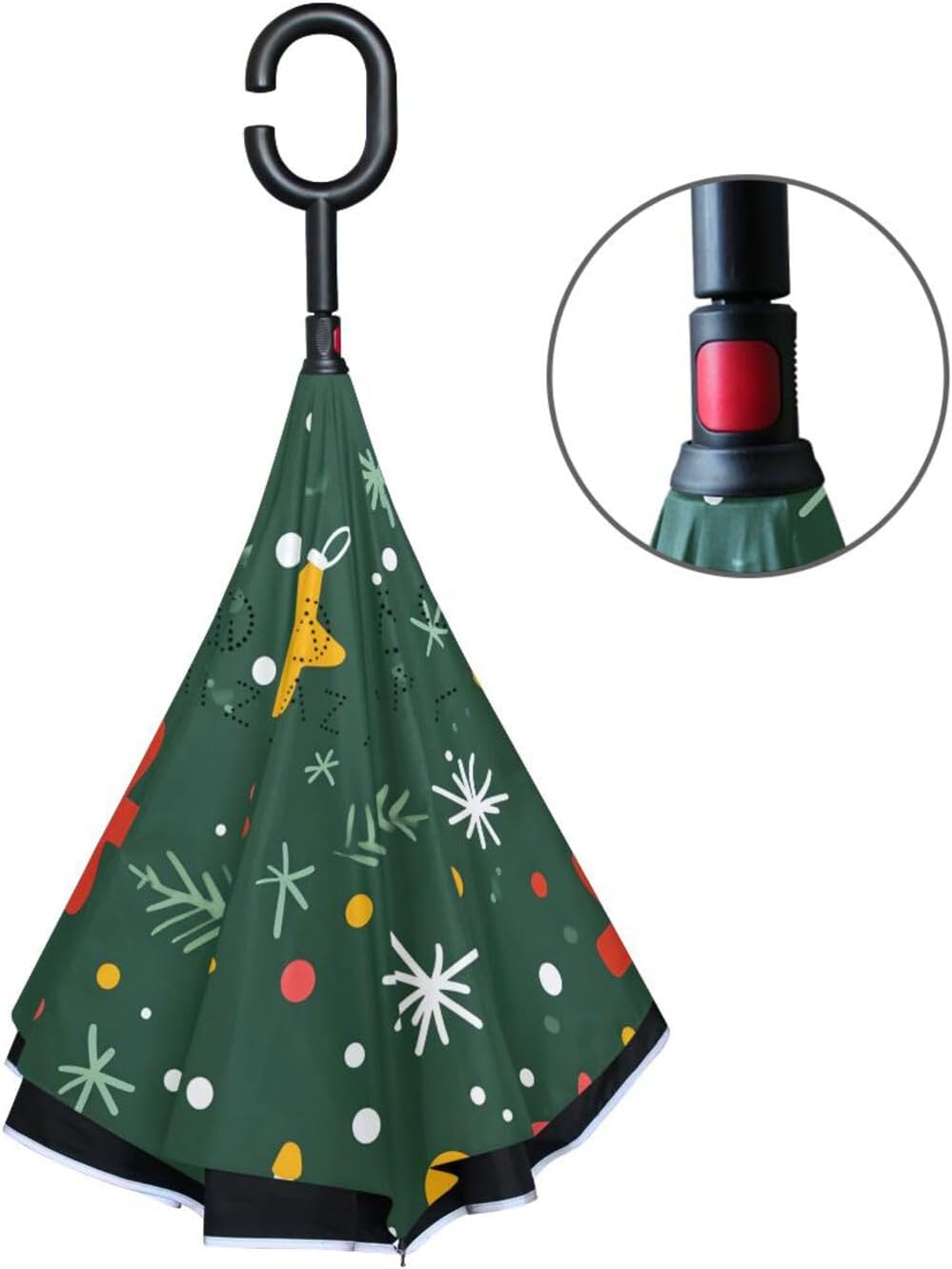 MATERIAL Umbrella fabric: 100% Polyester Umbrella frame: Fiberglass SPECIFICATION Canopy diameter: 110 cm/43.3 inch Umbrella surface diameter: 108 cm/42.5 inch Arc length: 124 cm/48.8 inch Folded length: 80 cm/31.5 inch FEATURE Canopy Material: The canopy is made of double-layered, super waterproof umbrella fabric, meticulously crafted from pure polyester fabric to ensure excellent waterproof performance. Opening and Closing Mechanism: The umbrella features a cleverly designed manual push-button opening and closing mechanism, making it simple and smooth to operate. Frame Structure: The umbrella's central shaft is made of sturdy hexagonal iron, paired with 8 high-strength fiberglass ribs, making it both lightweight and incredibly durable. Handle: The handle features an C-shaped design that conforms to the curve of the hand, providing a comfortable and convenient grip. Usage Scenarios: This umbrella is specifically designed for getting in and out of cars, effectively preventing rainwater from entering the vehicle. It's useful in both sunny and rainy weather. Safety Features: The umbrella's edge incorporates luminous reflective material, alerting others to your presence when walking in the rain at night, ensuring travel safety. Printing Technology: The inner layer fabric uses advanced digital printing technology, resulting in long-lasting, vibrant colors; the outer layer fabric is made of pure black, super waterproof material, offering a simple yet practical design. MATURE PRINTING TECHNOLOGY Mature printing technology makes the prints vivid and colorful. Hundreds and thousands of different cute pattern designs for you.