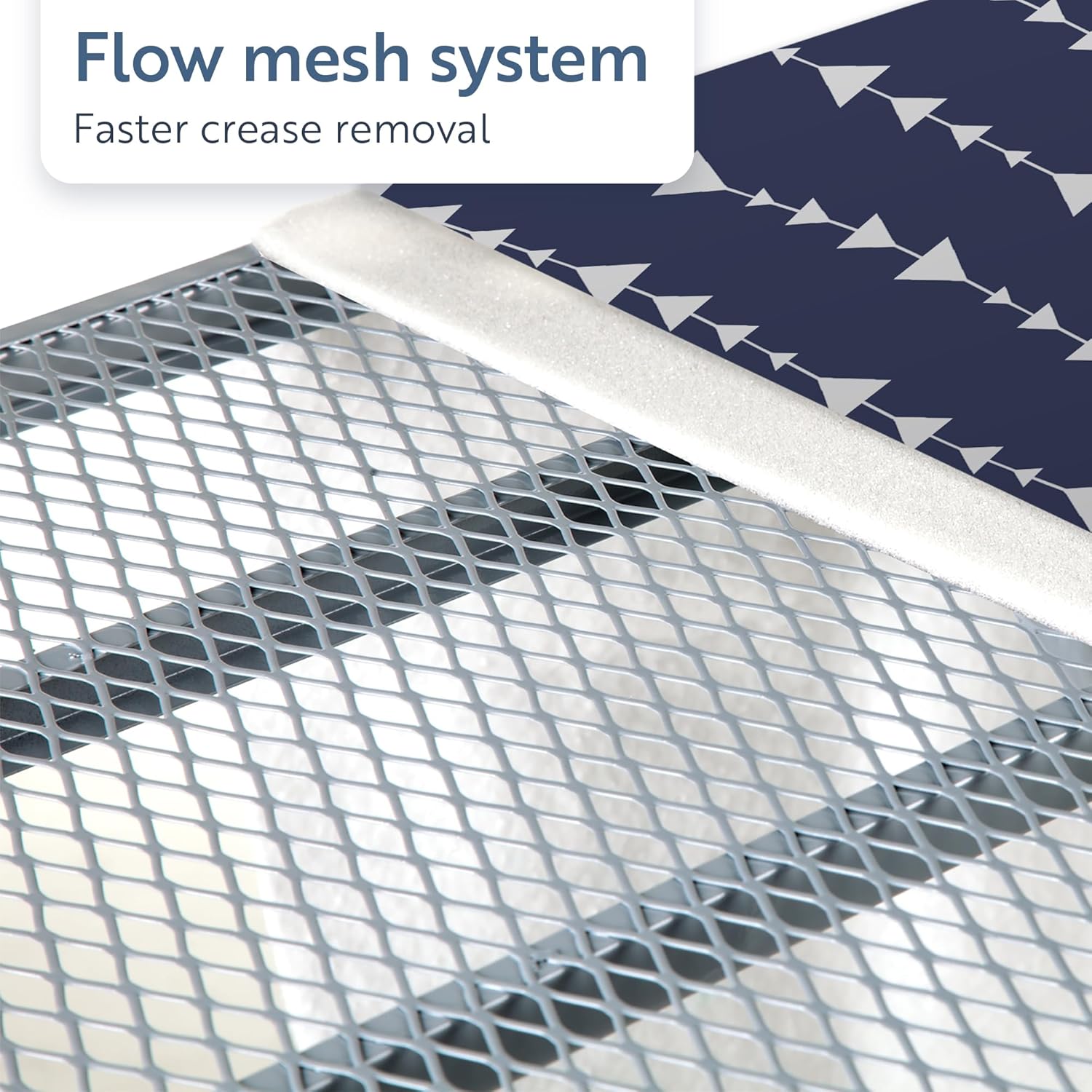 This UK-made ironing board features an extra-wide ironing surface measuring 43 x 14 inches, making it ideal for households of any size. Suitable for steamers and traditional irons, this ironing board features an ambidextrous iron rest, allowing you to switch between items and adjust the positioning of the garment on the board without interrupting the flow of your work. The ironing board is fully height adjustable from 0-37 inches, making it easy to iron at your preferred height. The sturdy 4-leg design offers extra stability and prevents the board from moving while ironing. The grey gunmetal paint forms a contemporary hard-wearing finish. Minky ironing boards are designed and manufactured in the UK using only the highest quality materials and processes. 5-year manufacturer's warranty.