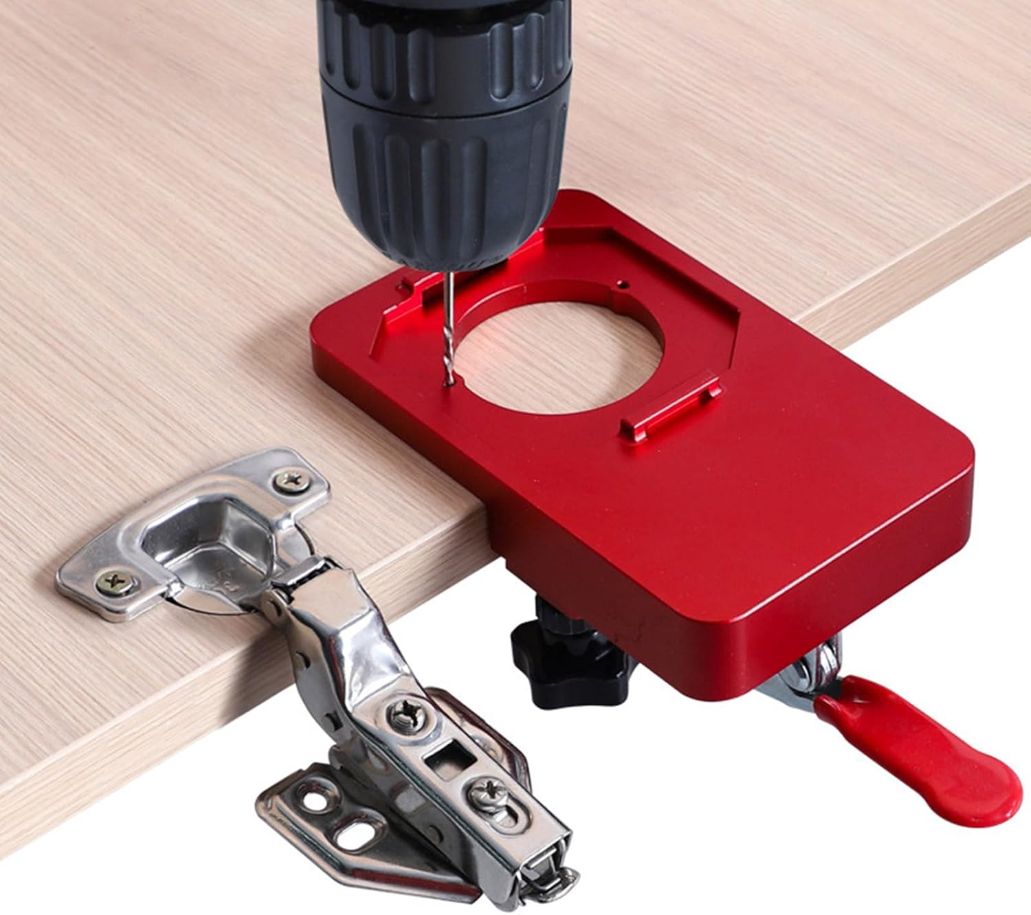 Concealed Positioning Hinge Hole 35mm Door Hinge Jig Cabinet Hinge Jig Cabinet Hardware JigFeatures:The hinge hole drilling jig adopts manual to firm clamping and fastening, and not easy to loosen. Clamping Thickness: This jig is suitable for clamping 0‑25mm sheet thickness, with a glossyappearance, without damaging or the board. The hinge hole opener adopt aluminum alloy light weight and wear and have a long service life. The hinge drilling jig have detachable top cover for easy replacement, and doublebearings drilling sleeves stable drilling. Rotate the nut to adjust the drilling edge distance, equipped with 35mm hole opener and 2mm drill bit, and practical. Specifications:Aluminum AlloyClamping Plate Thickness: Approx. 0-25mm / 0-1inSize:Approx.130mm/5.12''x78mm/3.07''Package Includes:1x Hinge Drilling Jig1x 35mm Hole Opener (10mm Limit Rings)1x 2mm Drilling Bit1x 2.5mm WrenchNote:Please allow 1mm errors due to manual measurement. Due to the difference between different monitors, the picture may not reflect the actual color of the item.
