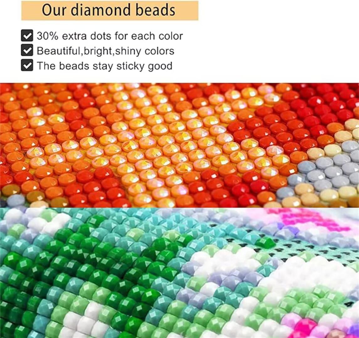 Product Information:5D DIY Diamond Arts and Craft Painting Kits Full Drill,Our diamond painting pictures are the perfect decoration for living roomsโโโ, offices and more to beautify your home. They are also ideal gifts for parents, friends and colleagues.DIY Steps:1. Find the correspondingnumber based on canvas list.2. Uncover small part of the transparent film on the canvas, please do not uncover all parts at a time.3. Put the proper amount of diamonds into the plate, shake the plate a few times, make more diamonds face up for subsequent installation.4. Press the mud glue with the tip of the pen.5. Touch the head of the diamond with the tip of the pen.6. Stick diamond onto thecorresponding canvas number.7. When finishing the paste, put thick books or other items on the surface of the diamonds,press it properlyto make it firm.Warm Tips:1. Due to large number of colors in the painting process, we recommend that you first complete one color, reloading the second color, gradually drawing.2. The rhinestone's color might be slight different in the picture because of the lighting effect, please in kind prevail.3. If you have any questions when you use our diamond art painting kit for adults, please contact us by email as soon as possible. we will reissue a replacement or a full refund for you within 24 hours, so please don't worry.
