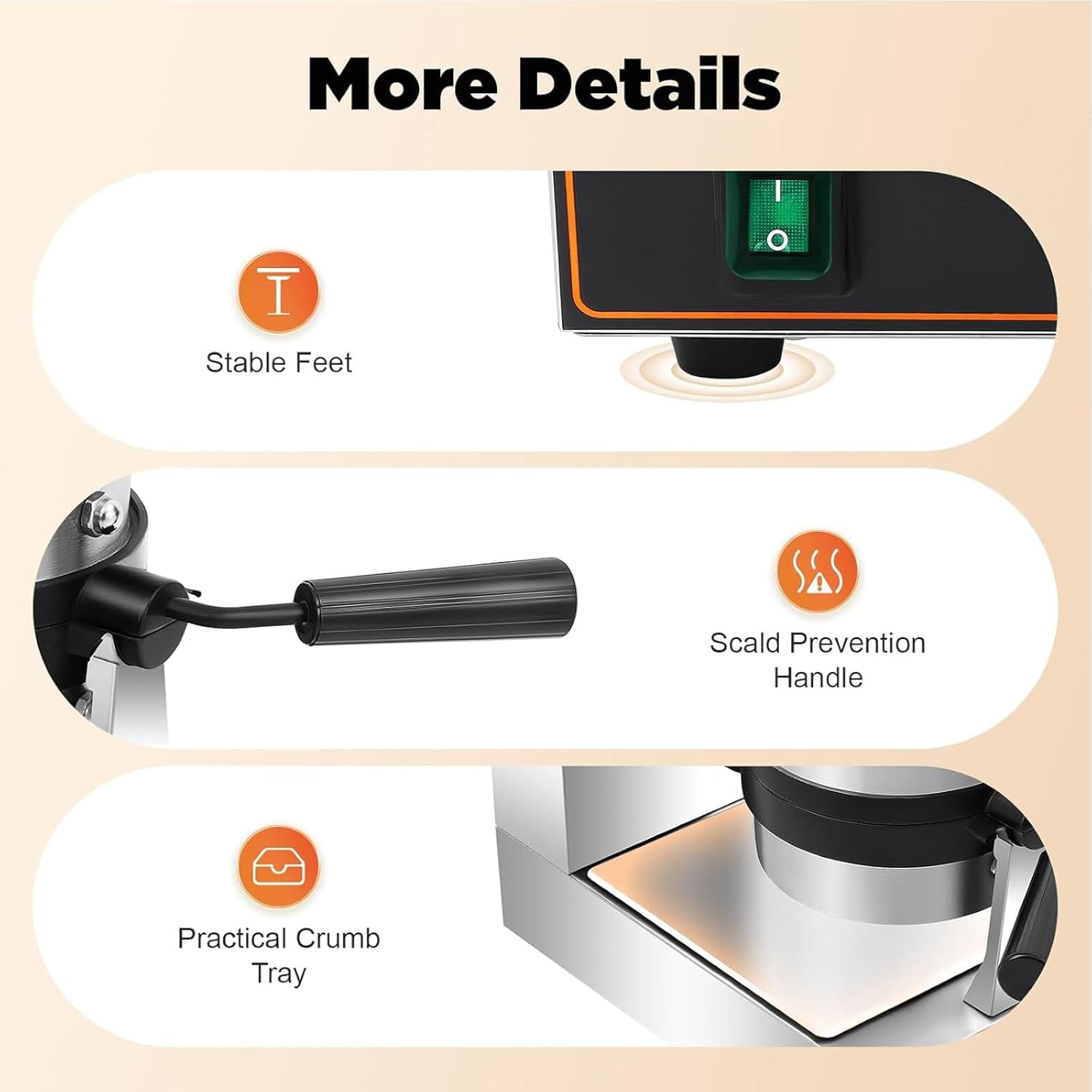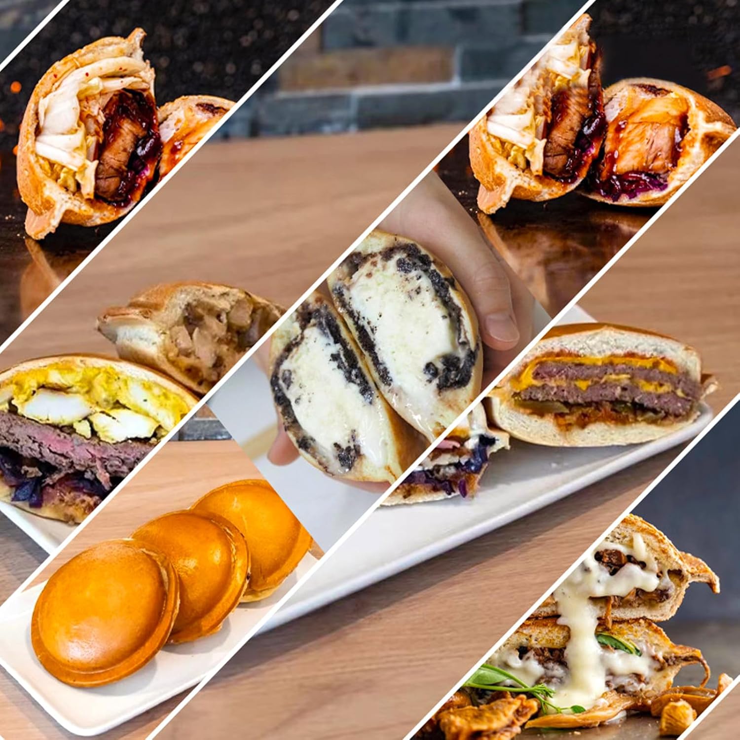 Our double-head electric burger and waffle maker makes it easy to enjoy delicious homemade burgers. It is Crafted with premium stainless steel and non-stick coating, making it durable, easy to clean, and a breeze to use—Suitable for busy mornings, snack breaks, or even small food businesses!Product Features:Fast & Even Heating – No more undercooked or burnt waffles!Hassle-Free Cleaning – Non-stick coating wipes clean in seconds.180° Flip Design – Ensures perfect crispiness on both sides.Premium Build – Stainless steel body lasts longer than plastic models.Versatile Cooking – Make sweet or savory waffles, adding chocolate, fruits, or ice cream.Simple 3-Step Process:STEP1: Prep – Plug in, preheat, and pour batter.STEP2: Cook – Set temp (50-300°C) & timer (0-5 mins), then flip for even heating.STEP3: Enjoy – Open, add toppings, and savor crispy, golden waffles!Specifications:Name: Double head Ice Cream Burger MakerColor: SilverMaterial: Aluminum, Stainless SteelProcess: Sanding, Wire DrawingCoating: Non-stick CoatingControl Method: Knobs, ButtonMount Type: CountertopPower: 1300W+1300WTiming Range: 0-5minRotatable Angle: 180°Power Cord Length: 1.2m/3.94ftTemperature Range: 50-300℃/122- 572℉Baking Pan Inner Circle Diameter: 10cm/3.94inBaking Pan Outer Circle Diameter: 18.5cm/7.28inProduct Size: 50*39*30cm/19.69*15.35*11.81inPackage Size: 57.5*50.5*37cm/22.64*19.88*14.57inGross Weight: 20kg/21.5 lbsPackage Included:1x Burger Waffle Maker