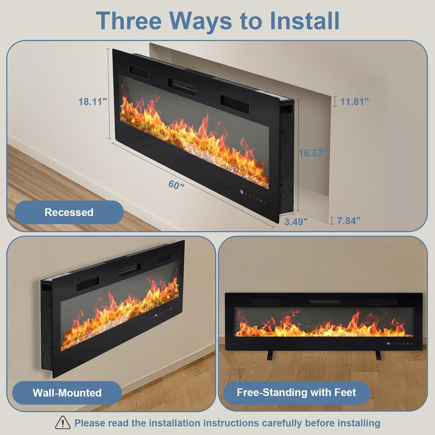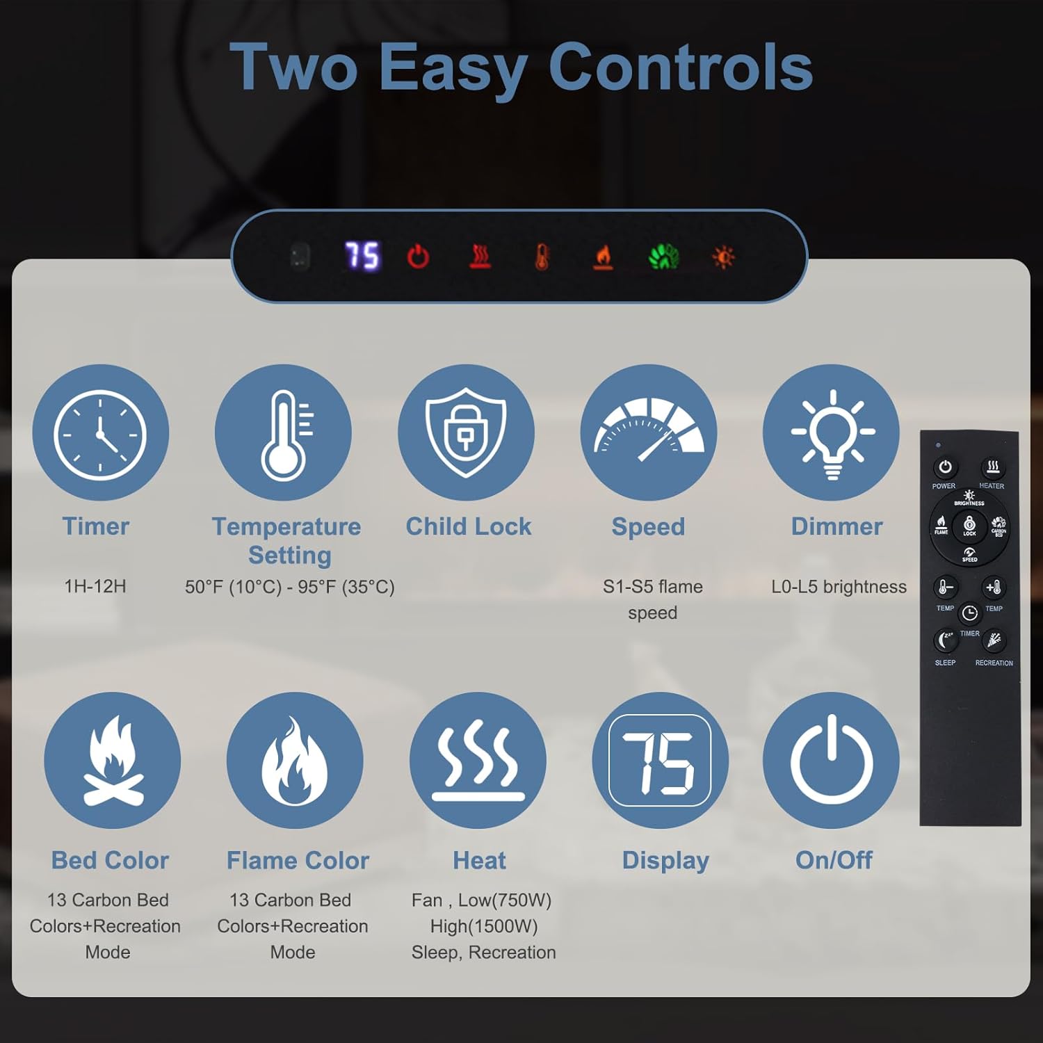 | Item Type Name | 1500W/750W Wall Mounted or Recessed Insert Fireplaces Heater with Remote Control,13 Adjustable Flame Color, 12H Timer, Touch Screen,Black |