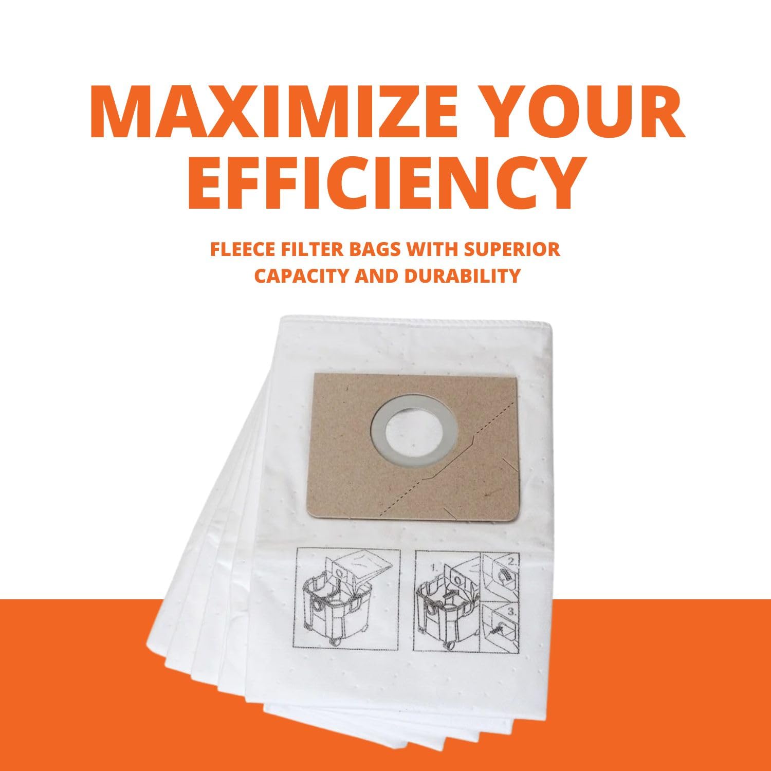 Fein Fleece Filter Bag for Turbo Vacuums - Tear-Resistant, Nonwoven, Turbo II Model, 5-Pack - 31345062010
