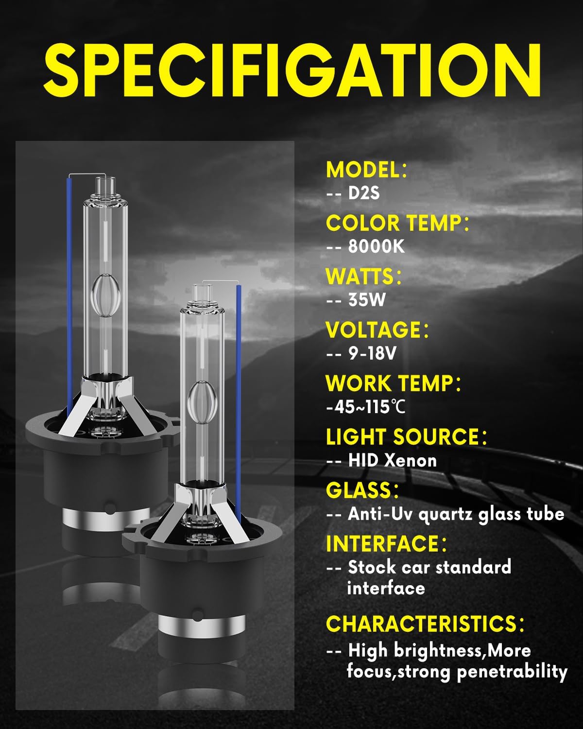 AULUXE D2S HID Headlight Bulbs feature a 150% brighter upgrade, serving as direct replacements for Cadillac SRX 2010 2011 2012 2013 2014 2015 2016 projector low beams (note: fits factory HID xenon systems only, not compatible with halogen setups); they also refresh the look of these models’ dual-beam front lamps as an easy upgrade kit that includes 2 premium bulbs. With 5-minute plug-and-play installation, the OEM-standard D2S bulbs match stock high/low dual-beam bi-xenon headlights for the listed models without modificatios, posing no risk of electrical damage. and are built with anti-UV quartz glass for a 3,600+ hour long lifespan. Emitting 8000K high penetration and focus white light, they provide clearer, farther-reaching visibility than stock 4300K bulbs (compatible with 85122 66240 66040 66240CBI 85122C1 specs) and feature 1-second instant-on ignition with minimal warm-up time to reach full brightness. Manufactured to strict international standards with CE, FCC, ROHS, and DOT certificatios, posing no risk of electrical damage. posing no risk of electrical damage.