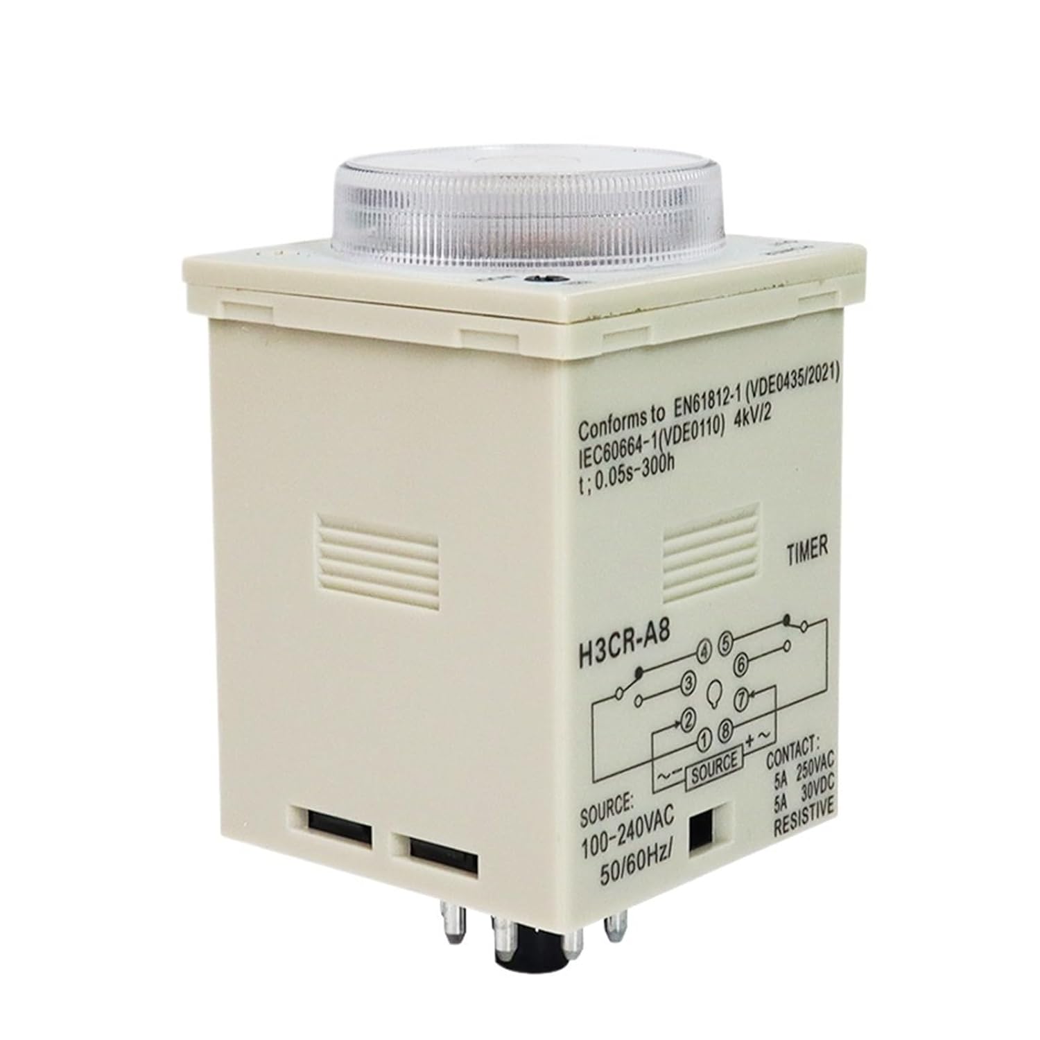 Relays / Current Monitoring RelaysH3CR-A8 Relay 100-240VAC 50/60Hz 0.05s to 300h 8PIN Power On and Off Cycle Delay Time Relay Timer Control Vane Model numberH3CR-A8Delay time0.05s to 300hTermination8PINSupply voltage100-240VACSetting methodIndication methodLEDExternal dimensions48x48x81.6 mmContact rating5A 250Vac, 5A 30Vdc [Resistive]Alias nameH3CR timerHigh-concerned : NoneTheory : Time RelayContact Load : Low PowerModel Number : H3CR-A8