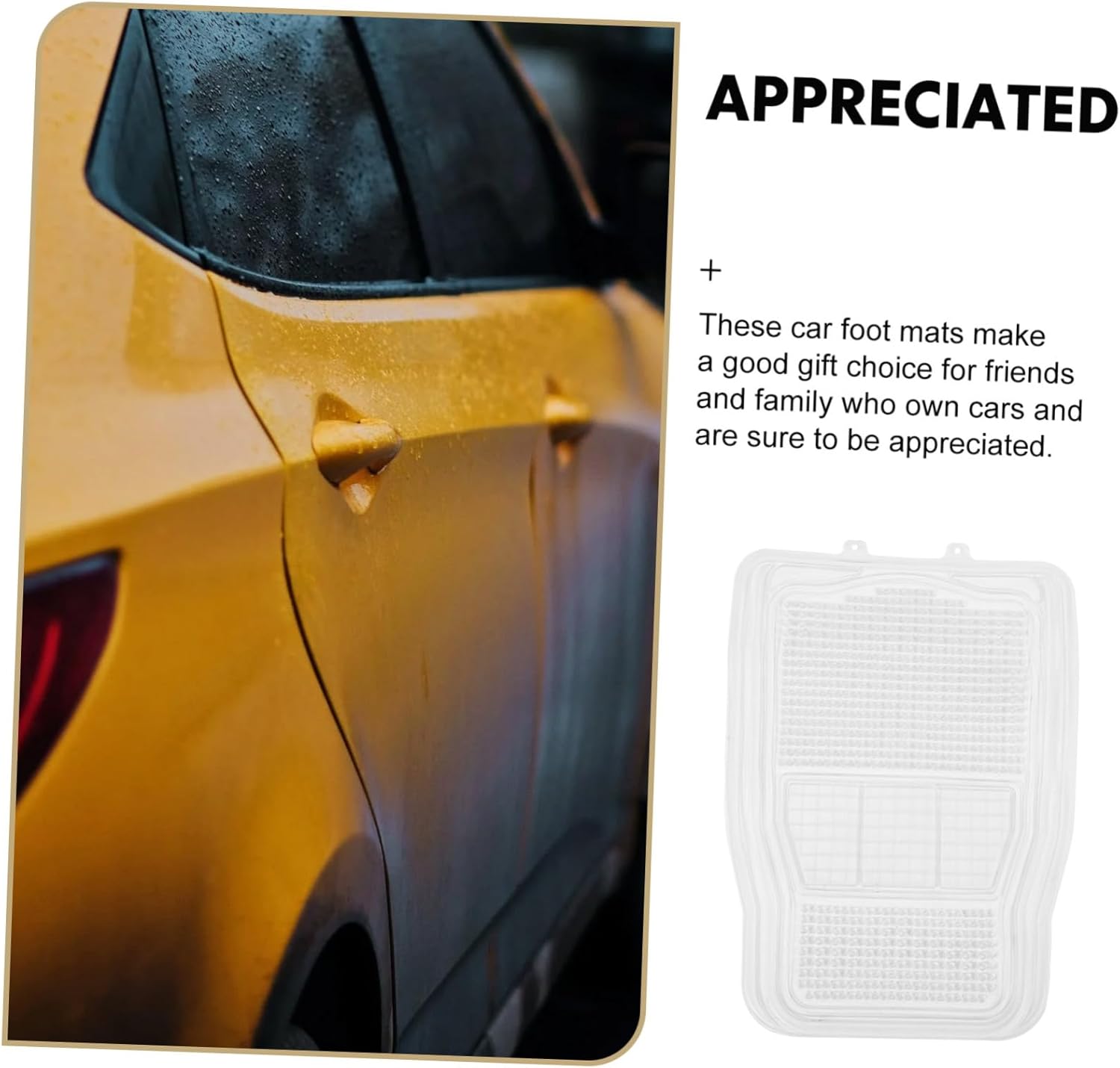 Package Include 1 floor mat Characteristics -Note:suitable for front seat car supplies. -Material:Silicone floor mats for cars -Color:Transparent silicone floor mats -Size:71.00X50.00X1.00cm/27.90X19.65X0 foot mats for auto. -These car mats can be convenient to use and take, bringing you good user feeling vehicle foot mat. -Foot mats for cars can be used for various types of vehicles, satisfying your different needs floor mats. -Using silicone materials with good workmanship, the car floor mat withstand long period using car silicone floor mat. -Simple design and easy to be cleaned, the floor mat will not affect the overall beauty of your car vehicle foot mats. -The floor protection mats can be easily placed in the foot spaces of your car front seat and provide excellent protection for your car's flooring vehicle floor mats.Goods Descriptionvehicle floor pads These floor mats for car are made of silicone materials and are designed to fit on the floor of your car front seat, protecting it from , mud, etc.vehicle These car floor mats are easy to use, a for busy car owners who want to keep their car clean without spending too much time on maintenance