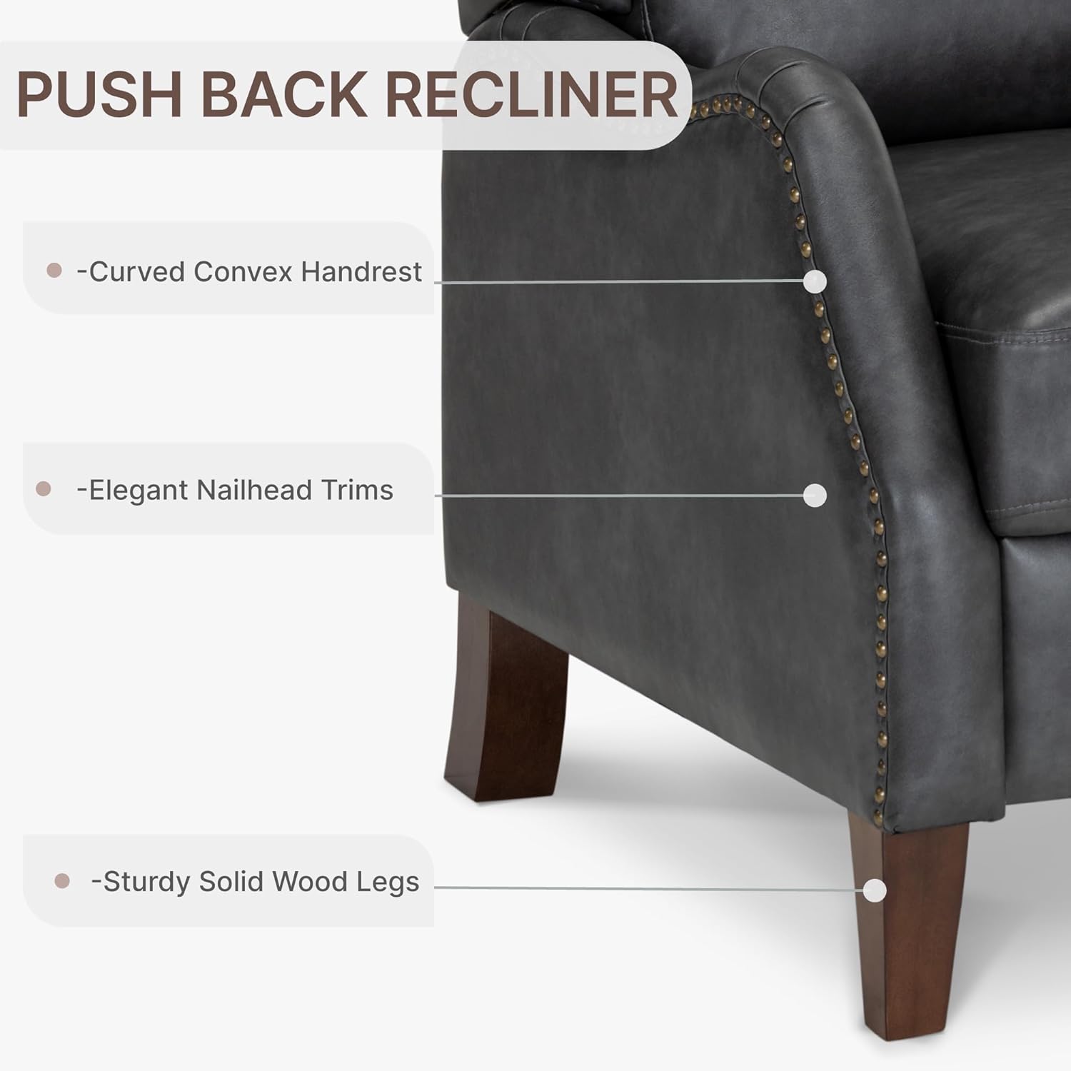 KISLOT Leather Pushback Recliner Faux Armchair with Rivet Decoration Single Sofa Accent Chair for Living Room Bedroom