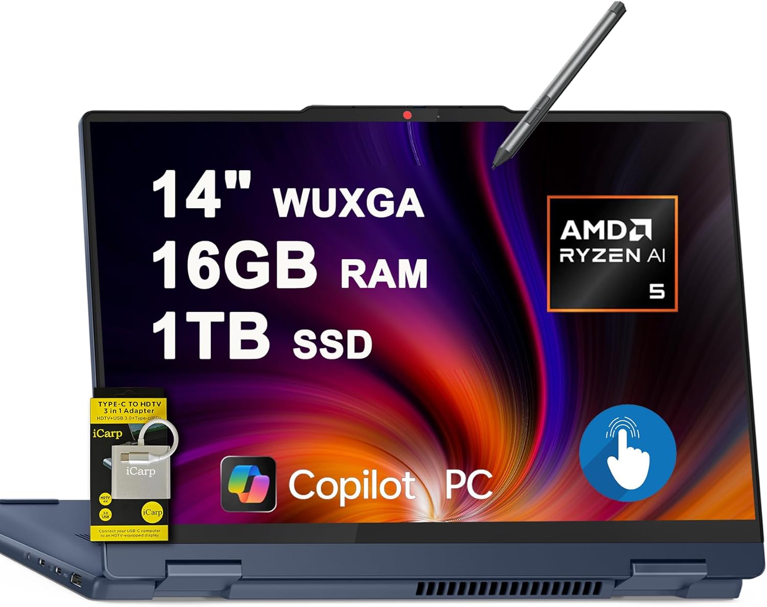 OVERVIEW: Product Details: Microprocessor: AMD 6-core Ryzen AI 5 340 Processor (Base Clock 2.0GHz, Max Boost Clock Up to 4.8GHz, 16MB SmartCache, 12 Threads) Memory:16GB RAM Storage:512GB SSD Operating system: Microsoft Windows 11 Professional Graphics & Video: 14" WUXGA (1920x1200) IPS Touchscreen (Glossy) Integrated AMD Radeon 840M Key Features: Backlit Keyboard: Yes FHD IR Webcam: Yes Wi-Fi 7: Yes Dolby Audio: Yes Ports: 2 x USB-C 3.2, 2 x USB-A 3.2, 1 x HDMI 1.4b, 1 x MicroSD Card Reader Battery: 57Wh Additional Information: Dimension: 8.94" x 12.32" x 0.69" Weight: 3.53 lbs