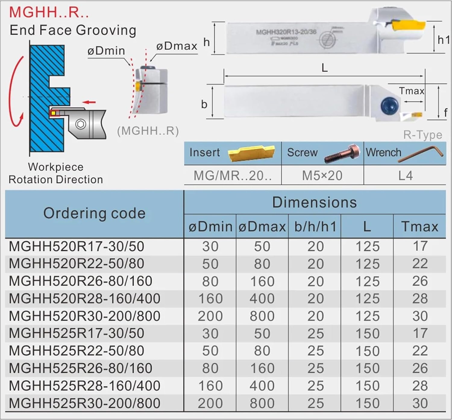 Angle Milling CuttersMGHH520 525 Right Hand End Face Grooving Lathe Machine Groove Cutter External Toolholders MGMN Turning Tool Holder 1Pcs==========Certification : noneHardness : HRC48Coating : NoneUsage : Grooving ToolOrigin : Mainland ChinaModel Number : MGHH520RMaterial : Other
