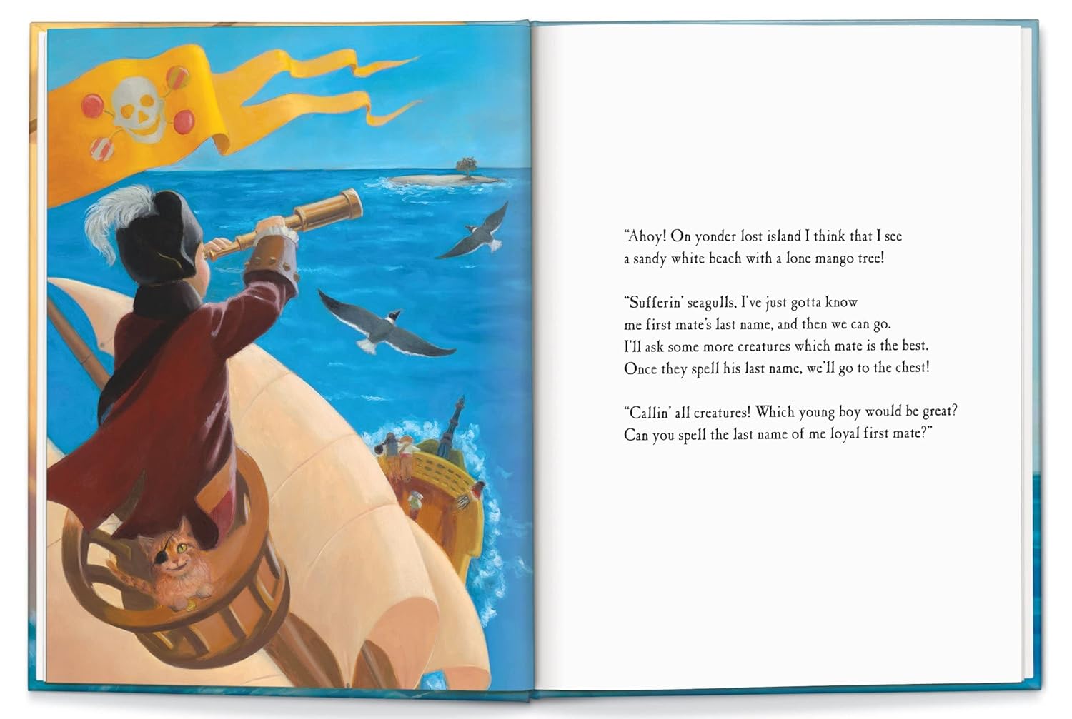 Part of the "My Very Own" series, "My Very Own Pirate Tale" is a personalized pirate name story that helps children to recognize letters and spell their own name. Different sea creatures and water-loving birds bring letters one by one to spell your child’s first and last name in rhyme. As the sawshark brings the S, the octopus brings the O, and so on, they describe why your child is the perfect candidate to become the captain's first mate. At the end, your child's name is revealed as the secret to opening the treasure. To celebrate, your child is made an honorary captain with his or her own ship! In addition to spelling, your child will learn fun facts about 62 different sea creatures in the illustrated encyclopedia. This pirate adventure story is a perfect pirate present for boys and girls. Written by Maia Haag and illustrated by Lisa Falkenstern. Hardcover; approximately 44 pages (on average); 9 x 11 inches. Made in the USA. Read more