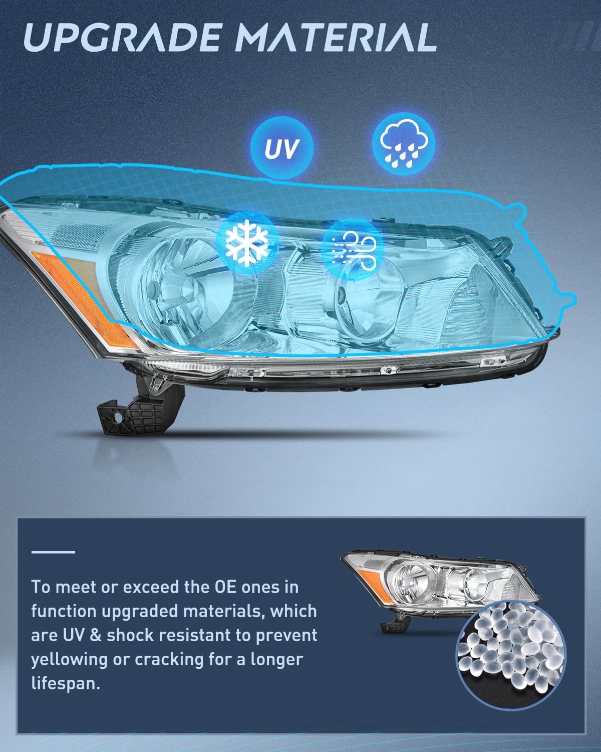 | Included Components | Nilight Headlights Assembly for Honda Accord sedan 2008 2009 2010 2011 2012 Headlamp Chrome Housing Amber Reflector |