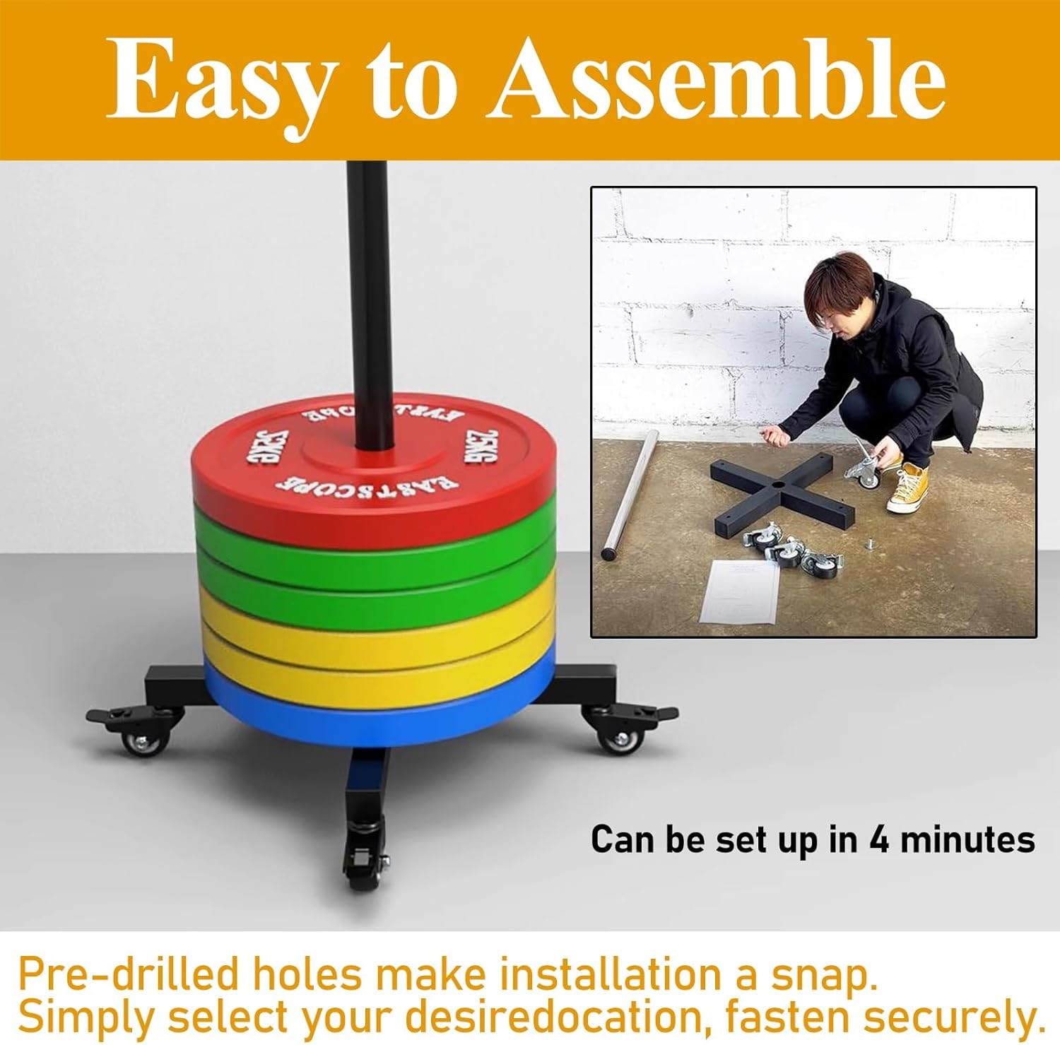 Floor space in a gym is precious. Make the most of it with the weight plate stacker which allows you to store your weight plates vertically. Bring the most optimal, efficient organization option into your gym that will help you make the most of your fitness space!Specification: Color: BlackMaterials: SteelWidth: 60cmDepth: 60cmHeight: 90cm/35.4in, 80cm/31.5in, 70cm/27.6in, 50cm/19.7inDiameter of hole: 4.8cm/1.9in, 2cm/0.8inLoad Bearing Range: ≤ 500KGCastor Bearing Capacity: (Single) 200KG Feature:Keep your plates off the ground.No more tripping or stubbed toes.Steel shaft to store your barbells vertically. Stack your plates on this wheeled platform for the most storage with the smallest footprint. This allows your rack to move or stay firmly in place whenever needed. Contents: 1x Weight Plate RackTips:Manual measurement products may have dimensions of a few centimeters of difference, please understand.There may be some differences between the image and the product due to display and lighting reasons, please refer to the actual product.