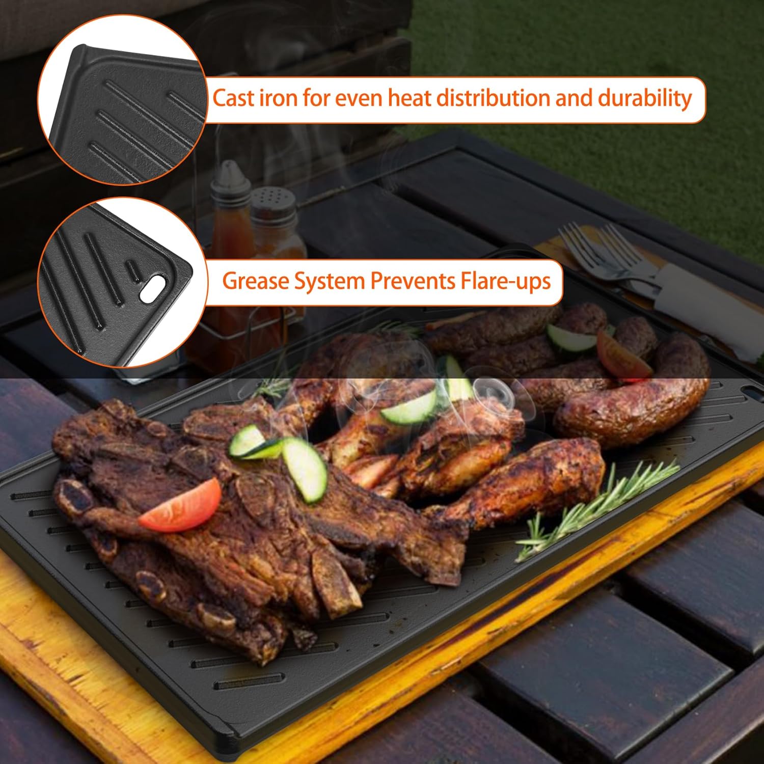 Onlyfire Reversible Cast Iron Griddle Replacement for Weber 7637, Grill Cooking Griddle for Weber Spirit I & II 200 Series (with Front-mounted Control)