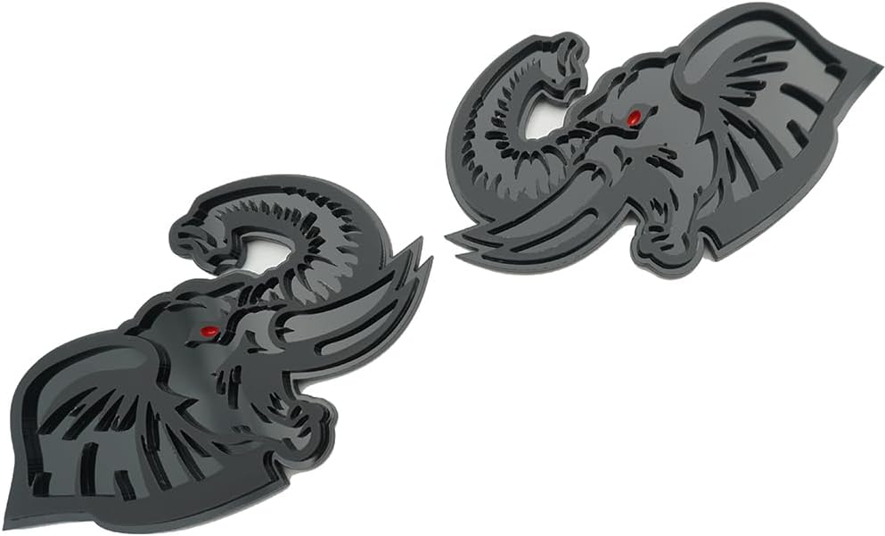 Pair Set Angry Elephant Red Eyes Emblem 3D Badges Custom New Nameplate Sticker Replacement for Universal Car Vehicle, Truck, Motorcycle Door Window Decoration