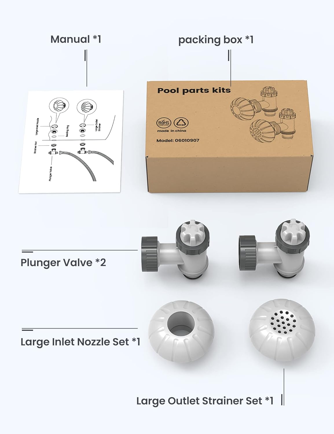 POOLHACKER Above Ground Pool Parts, Pools Replacement Parts for Plunger Valve, Inlet and Outlet Ports Replacement Part Kit, Pool Accessories and Parts