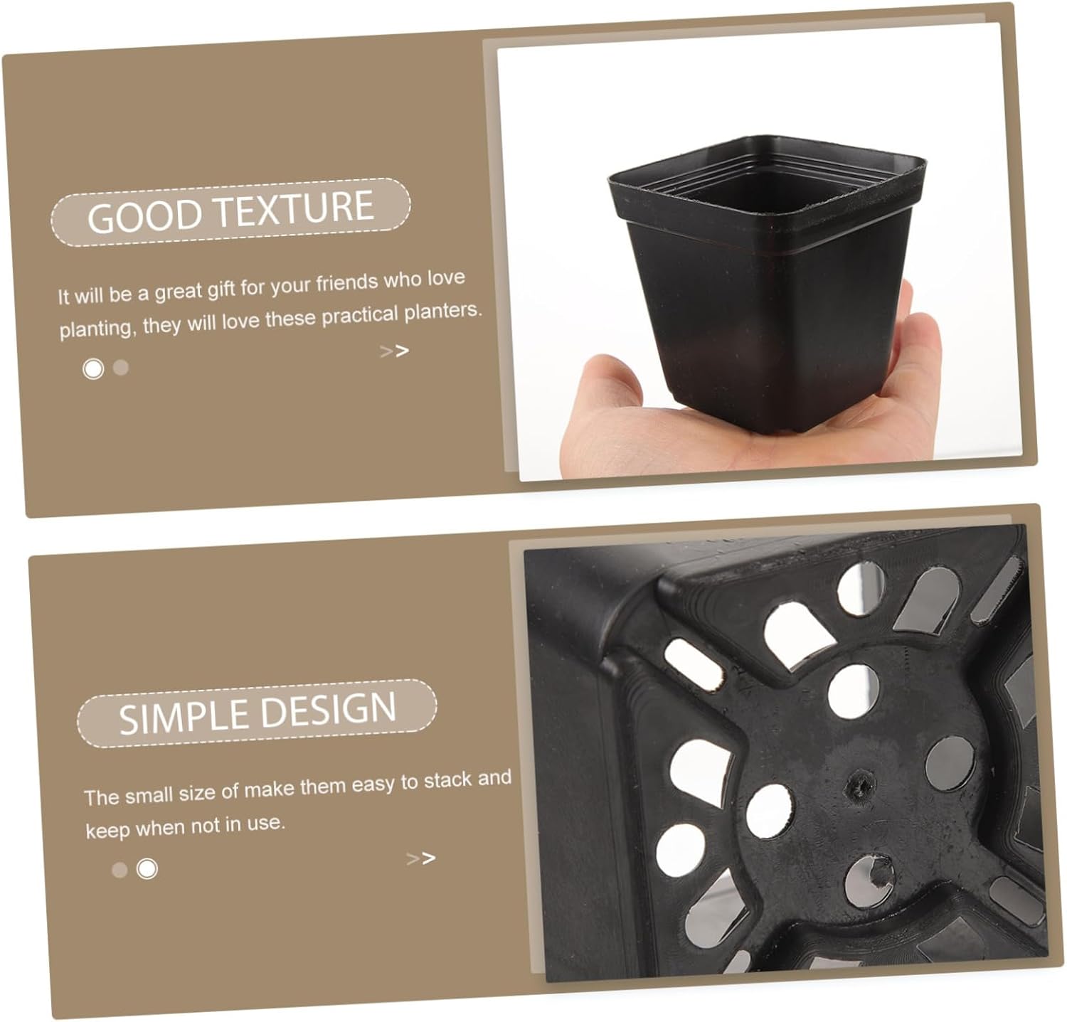 Package Include 120 x flower pot Features -Size:7.00X7.00X4.70cm/2.75X2.75X1.85in pot with drainage -Material:Plastic plastic pot -Color:Black plastic nursery pots - Made of plastic material, not easy to break or tear, the planter can be used long term plastic flower pots. - Equipped with drainage holes for easily water drainage. Versatile use for seedling cultivation, planting. seedling pot - a great your friends who love planting, they will love these planters large nursery pots. - Sleek square shaped design modern look. Made of lightweight and sturdy plastic for nursery pot. - Light weight, , and reusable, the flower pot has a smooth surface, and are easy to clean plant pots.Goods Informationsucculent planting container The plant pot is easy for cleaning, great for replanting, flower plant lovers.starter plant pots Must-have supplies for gardeners and plant lovers.square nursery pots Are you looking for square plastic planter? The small planter pot is made of plastic material, which has the durability, .flower for plants The small size of make them easy to stack and keep when not in use