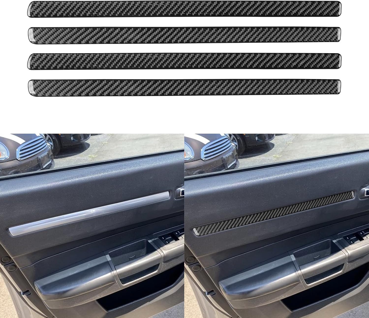 Our Product Elevate your driving experience with our premium black carbon fiber exterior/interior accessories, designed to refresh and personalize your car’s interior. Blending sleek aesthetics with durability and ease of use, these black carbon fiber Trim Stickers are the perfect upgrade for your vehicle’s interior. Occasion Transform your car's interior with a bold, sophisticated look. These black carbon fiber decals are perfect for anyone wanting to infuse a high-end, sporty vibe into their vehicle. Whether enhancing the entire cabin or focusing on specific details, these decals add a luxurious, modern finish to various interior surfaces. Ideal for: Full Interior Makeover: Refresh your cabin with cohesive black soft carbon fiber accents on the dashboard, center console, instrument panel, and door handles. Subtle Highlights: Add sleek accents around gear shift surrounds, air vent edges, or instrument dials for a polished, unique touch. Protection with Style: Not only enhances aesthetics but also shields surfaces from scratches and fading, keeping your interior looking fresh. Installation Steps: Prepare the Surface: Clean the area where the decal will be applied, ensuring it's free of dust, grease, and moisture. For best results, use an alcohol-based cleaner. Align & Position: Carefully peel a small section of the adhesive backing. Position the decal in place and adjust it for perfect alignment. Apply & Smooth: Gradually peel away the rest of the backing, pressing down the decal as you go. Use a soft cloth or squeegee to smooth out any air bubbles from the center to the edges. Secure Edges: Apply firm pressure around the edges to ensure a strong hold, especially on curves or corners. Finishing Touches: Allow the decal to set for a few hours for maximum adhesion. Enjoy your newly upgraded interior! Tips: In colder weather, use a hair dryer to warm the decal slightly for better adhesion. After-sales: If you have any questions about the product, please don't hesitate to contact us, and we will resolve it for you as soon as possible.
