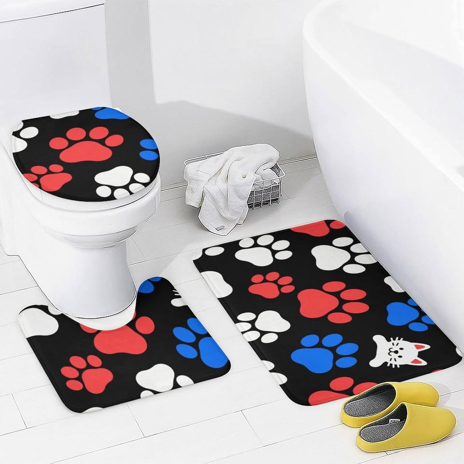 Welcome to a Cozier, More Organized BathroomComplete Bath Mat Set Cute Shower Curtain Set Bath Accessories Set Bathroom Set with Shower Curtain Bathroom Decor Soft Bath Mat Bathroom Decor Set Bathroom Rug Bathroom Floor Mat Housewarming Gift Bathroom Vanity Mat Luxury Bathroom Mats Set for Tub Side Bath Mats for Bathroom SetLuxurious Comfort UnderfootOur thick, velvety coral fleece bath mats are exceptionally soft and gentle on your skin. They are highly absorbent, quickly wicking moisture away from your feet after a shower or bath, leaving your bathroom floor dry and preventing slips.Functional Protection & PrivacyThe included waterproof Oxford fabric shower curtain is a reliable barrier against water spray, protecting your bathroom from moisture. It ensures privacy while its sleek look complements most decors. The matching toilet lid cover adds a finished, hygienic touch to your toilet.Thoughtful Details for Your ConvenienceThe modern shower curtain set feature a secure non-slip backing to keep them firmly in place. The set comes ready to use with 12 durable C-shaped plastic hooks for the curtain. Achieving a put-together bathroom has never been easier.Easy Care for Lasting BeautyMaintaining a fresh, clean bathroom is simple. The mats fluff up nicely after washing. We recommend gentle hand washing to best preserve the fabric's softness and color vibrancy. The shower curtain can be wiped clean with a damp cloth.Create Your SanctuaryIdeal for master bathrooms, guest suites, apartments, dormitories, or rental properties. This set is the perfect gift for housewarmings, new homeowners, or anyone looking to upgrade their bath space with minimal effort and maximum style.