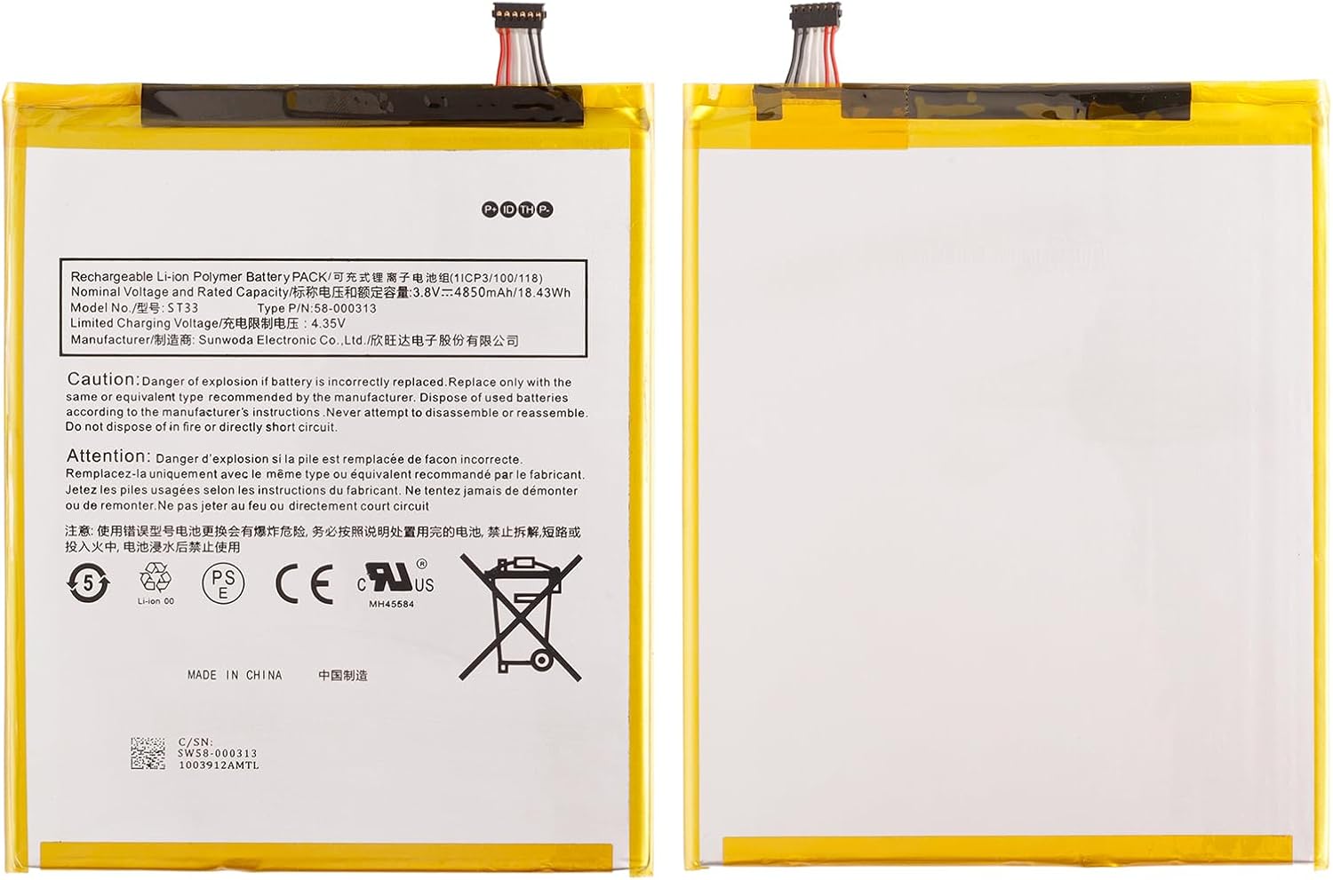 Specification: Part number:58-000313 Capacity:6500mAh/24.7Wh Type:Polymer Compatible models: ST33 HD 8(10th Generation) K72LL4 2020 Package includes: -1 x Grade A+ Battery Product Description: ✔1.We don’t provide an instruction manual. You can find instructional videos on YouTube. We always recommend a trained technician replace it. ✔2.To have the best use effect, please use up all the battery power until the phone automatically shuts down, and then fully charge it. Repeat this action 3-5 times to make the battery achieve its best use effect. ✔3. Do not use low quality third-party adapter charger to charge your device, that will shorten the battery's life. Note: 1. Please double check the model number of your device before purchasing to determine if this battery is compatible with your device. 2. Due to lighting and screen differences, product colours may vary slightly from the images. 7.Please do not hesitate to contact us if you have any questions or queries about the products you have received.