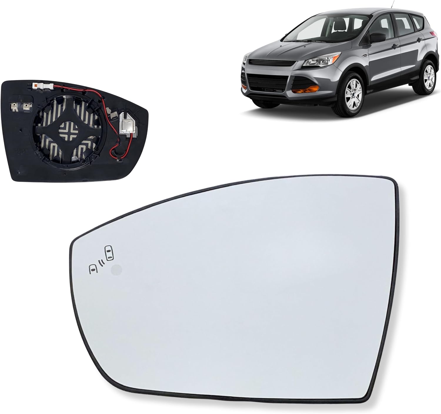 Driver Side View Mirror Glass Replacement SPECIFICATIONS Position : Driver Left LH Heated Mirror Glass : Yes Backing Plate : Yes Spotter / Blind Spot Mirror: No Blind Spot Monitor / Detector / Assistance / BSM : Yes Electro Chrome / Auto Dimming : No FITMENT 2013 - 2016 Escape 2013 - 2018 C-Max NOTE Please check the fitment before you place the order. If you can't confirm compatibility, do not hesitate to post a question. Unless otherwise is stated, features must be exactly same with factory built part in order replacement part to fit and function.