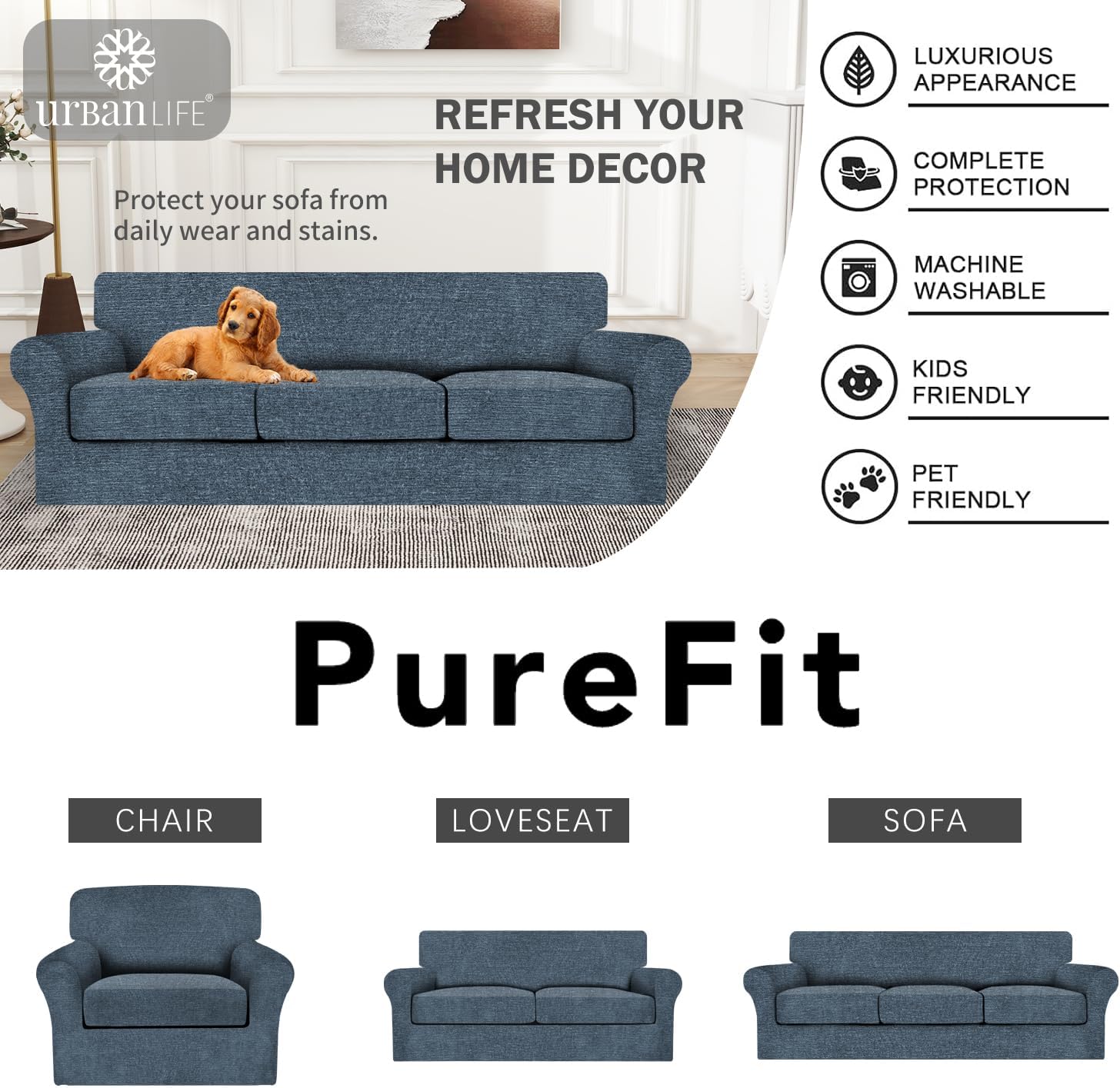 | Style Name | URBANLIFE Stretch Sofa & Loveseat Covers Dusk Blue Gray |