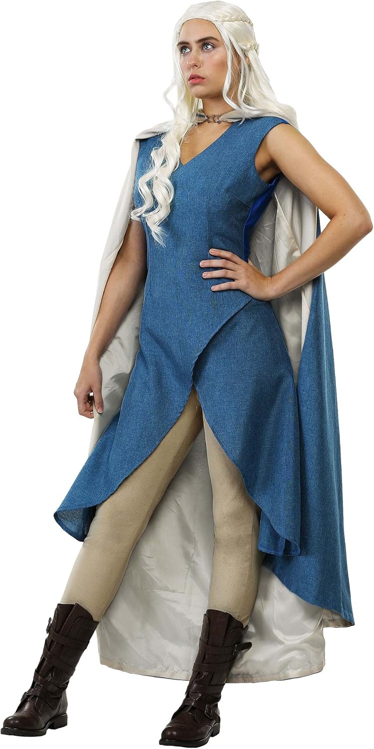 Dragon Queen Costume for Women: We're fans, too, which is why we go the extra mile on all of our costume styles. Medieval and Renaissance fantasy is one of our favorite costume themes, which is why we put extra attention into getting this Dragon Queen costume just right. The power of fire and blood will be yours for the taking with this alluring fantasy outfit! Product Features: This women's dragon ruler costume comes with a sleeveless faux linen tunic. The overlapping front panels give it a mock-wrap look, with the sides draping down each leg and a high cut in the middle. The tunic dress zips up the back. A matching hooded cape features an oversized hood and fastens around the neck with a hook & eye. The faux suede leggings complete the look and fit with an elastic waistband in the back. Product Design: 100% polyester faux linen and faux suede fabrics Sleeveless faux linen tunic secures with a back zipper Tunic dress details include a V-neck and tailored princess seams Tunic features overlapping front panels for mock-wrap look Faux suede leggings have elastic back waistband, false fly in front with a decorative snap Fully-lined faux linen cape has an oversized hood; it fastens at neck with hook & eye About Us: Fun Costumes are exclusively made by us and begin with passion, teamwork, and industry expertise - proof that with the right people even a simple idea can grow into something incredible. We started in a small garage in Minnesota, and now we're creating costumes for people all around the world. Get this Dragon Queen Costume for a dragon-sized experience this Halloween!
